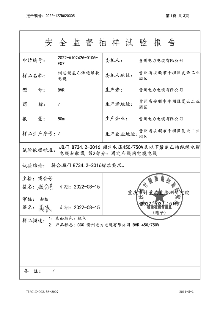 下一篇:聚氯乙烯絕緣聚氯乙烯護(hù)套電力電纜(銅芯聚氯乙烯絕緣聚氯乙烯護(hù)套電力電纜)國(guó)抽檢驗(yàn)報(bào)告